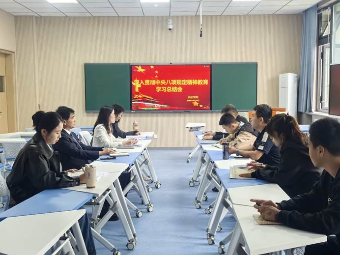 9月19日上午,beat365英国官方网站于阎良校区民航大楼智慧教室召开深入贯彻中央八项规定精神学习总结会议,全面总结学院学习教育开展情况和成效经验。学院党总支书记丁琦、副书记兼院长吕毅、总支委员、各支部书记出席会议。会议由丁琦主持。